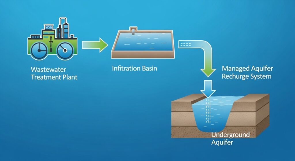 - Year-round source: Unlike rain-dependent natural recharge, wastewater recycling provides a consistent water supply even during drought.